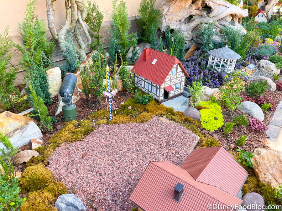 Okay, we’ve shown you how the miniature village in the Germany Pavilion gets decked out for various EPCOT festivals. It already got its Flower and Garden Festival makeover…but we noticed a new addition! Yup, that’s a teeny tiny maypole!