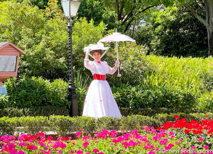 We spotted a few characters out and about in the park, too! Mary Poppins was greeting guests in the United Kingdom Pavilion…