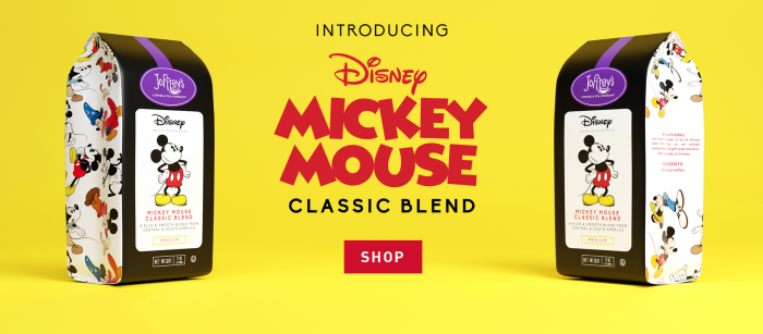 Joffrey’s has just introduced the Disney Mickey Mouse Classic Blend, a medium roast blend that is inspired by the main mouse himself. Um, sign us up!