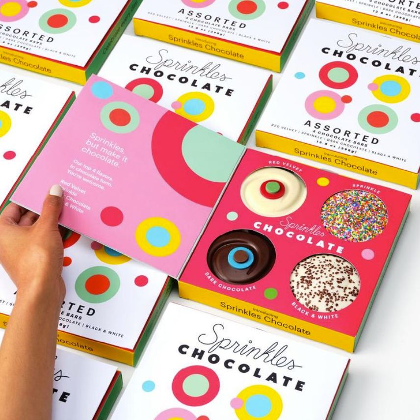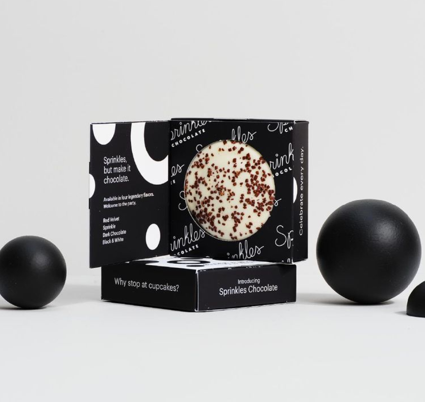 It wouldn’t be Sprinkles chocolate without a sprinkle option, right?! The Sprinkle chocolate bar is a white chocolate bar with rainbow sprinkles inside AND outside. This chocolate bar is fun and colorful!
