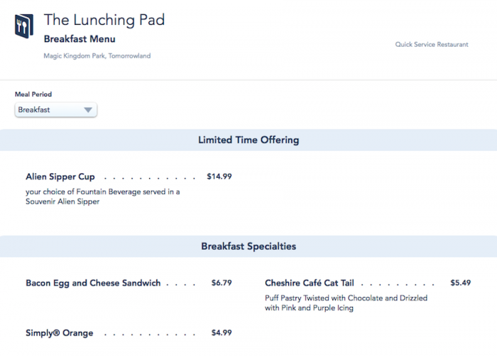 One such option was The Lunching Pad in Tomorrowland, a restaurant whose name makes it sound pretty committed to a single meal…but surprise, surprise!