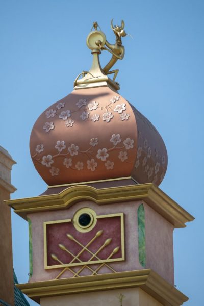 The details of each tower tie into the heroine it’s dedicated to — for example, you can see Mushu on Mulan’s tower and Celtic artwork on Merida’s tower. Many of these additional embellishments were carved by hand!