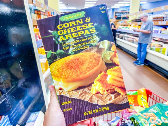 Trader Joe’s has some Corn and Cheese Arepas filled with mozzarella cheese in the frozen section that are a great option for a snack or a light meal.