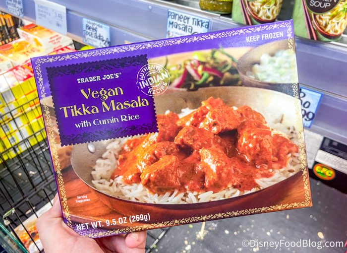 Trader Joe’s sells a Butter Chicken with Basmati Rice that you can warm up in the oven or the microwave! Pair it with Trader Joe’s Garlic Naan and you have yourself a fancy (and delicious) Disney-inspired meal! The Butter Chicken serves one and can be found in the frozen section, and, the Garlic Naan is also in the frozen section, but comes in a pack 4.
