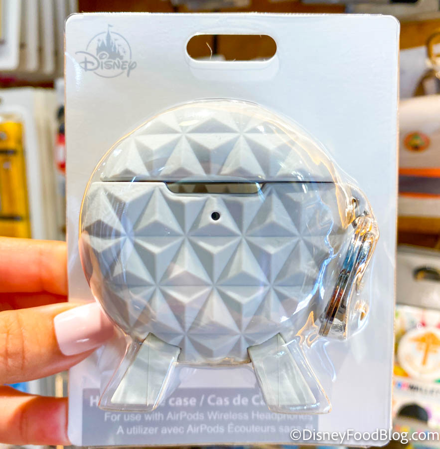 First up is the Spaceship Earth Headphone Case. Ummm…WHAT? SO cute, right?? This miniature version of EPCOT’s park icon features all the little details including the legs and pattern you’d find in the park!