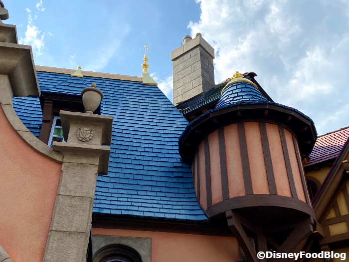 You can really see the difference in this picture, which shows a green rooftop versus the rich blue elsewhere in Fantasyland!