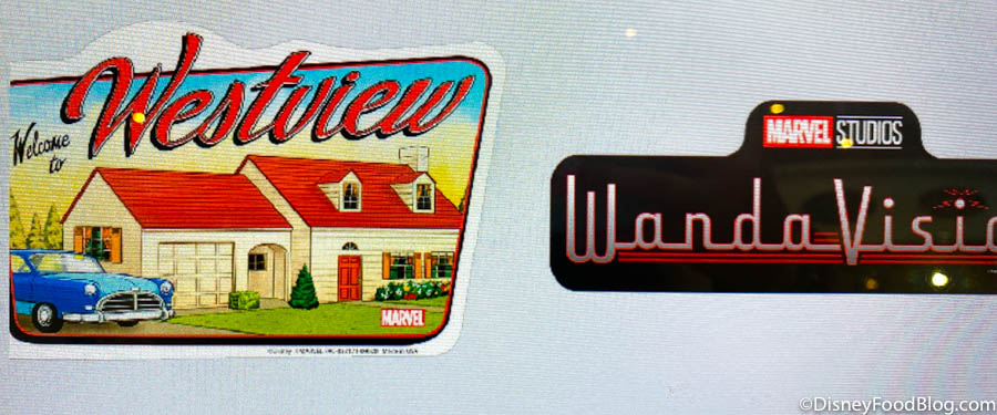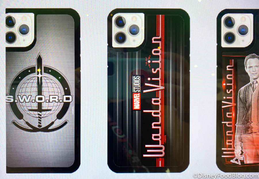 At Tomorrowland Light and Power Co. (that’s the Space Mountain gift shop!), we spotted WandaVision phone cases and magnets. These aren’t for individual sale, but you can make them using Disney’s MaDe software. There are quite a few phone case options…