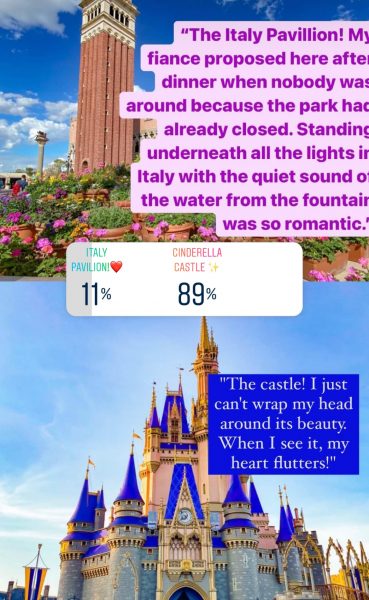 First up, we’ve got the EPCOT Italy Pavilion versus Cinderella Castle. The romantic setting of Italy had no chance against the Magic Kingdom park icon and Cinderella Castle took the lead with a whopping 89% of votes.