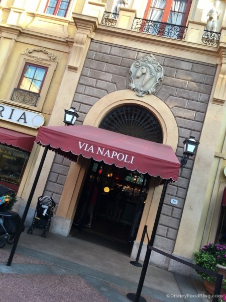 - you’re looking for a casual, yet nice place to dine at EPCOT. Via Napoli delivers! While the Italian atmosphere makes for a more up-scale dining feel, this restaurant has a much more leisurely and relaxed feel. You won’t feel odd with your kids or wearing flip-flops and a Mickey shirt here!