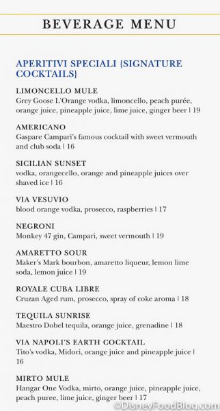 Via Napoli’s drink menu is almost as equally as long as the food menu, starting with signature cocktails.