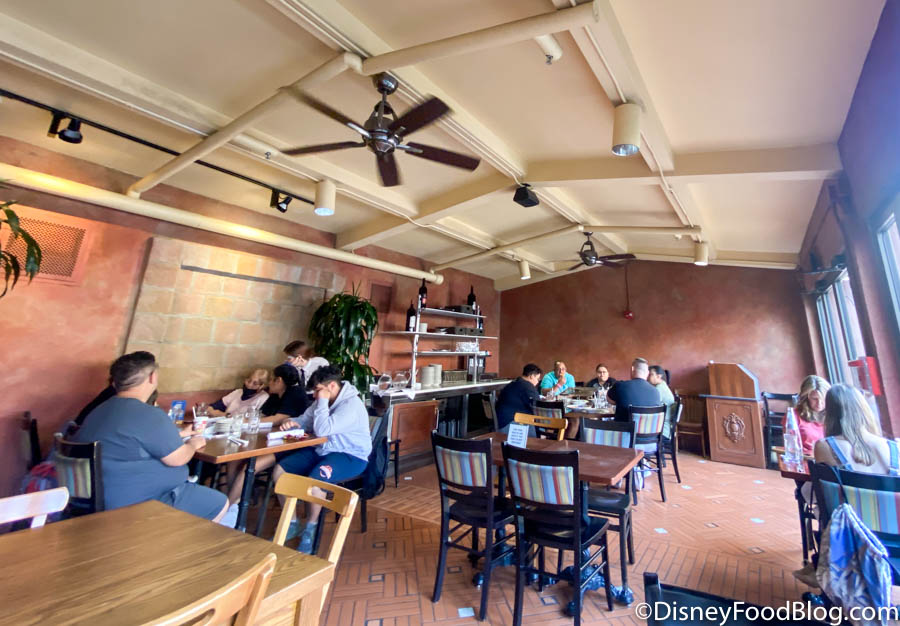 A newer addition to the seating area is outdoor seating. The outdoor dining area is separated by plants and is located next to the enclosed patio. Via Napoli has joined many other Disney restaurants in adding outdoor seating due to the pandemic. It’s actually pretty nice because you can enjoy your authentic Naples- style pizza with the beautiful Italy Pavilion as your background!