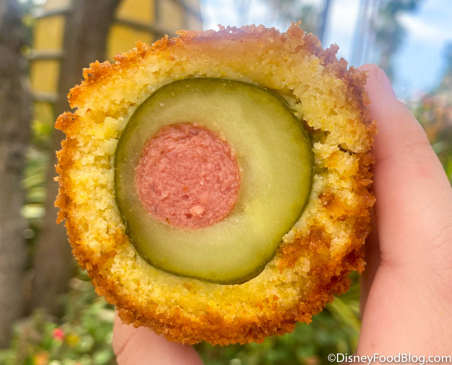 If you’re ambitious and wanna try this snack for yourself, you can snag it for $13. Pro tip: cut it open BEFORE you start chowing down. It’s much easier to eat it that way than trying to munch on it straight off the stick! So…what side of the pickle corn dog debate are you on?! Would you try this or not? Let us know, and stay tuned to DFB for more Disney news!