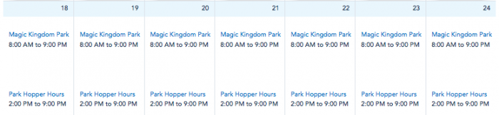 Hours have been extended in all 4 parks for April 18th-24th. Magic Kingdom was previously open from 9AM-6PM, but now you can squeeze in a few extra rides from 8AM-9PM!