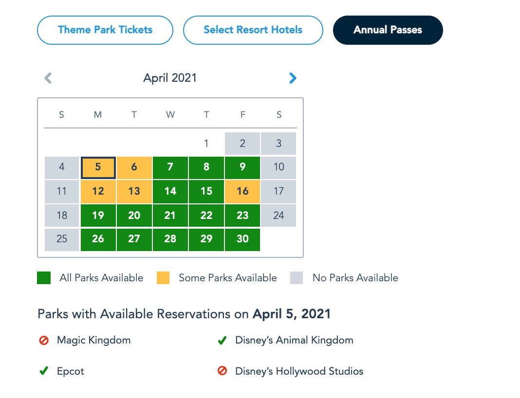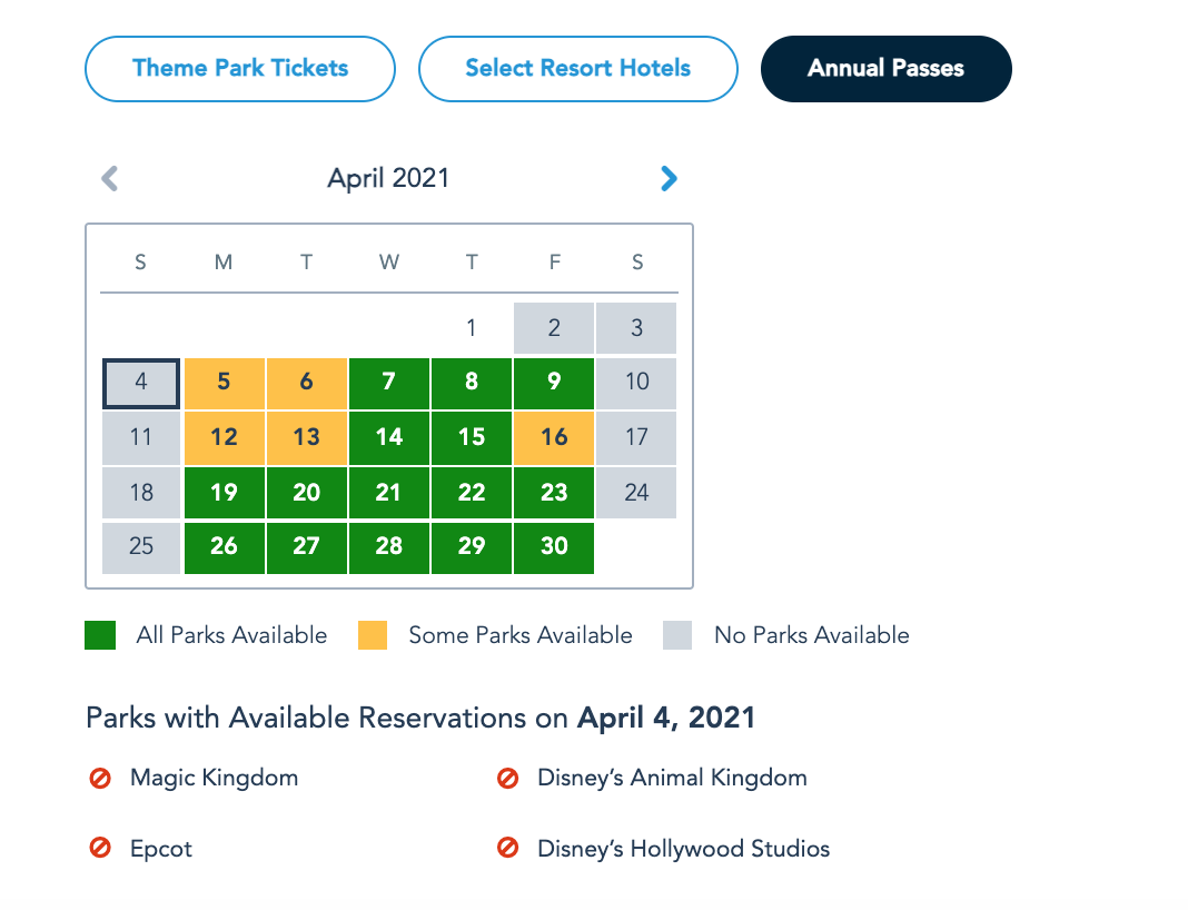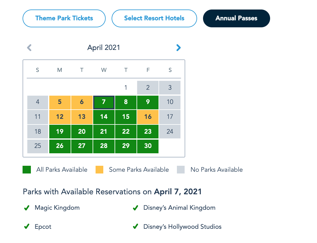 And from Wednesday, April 7th through Friday, April 9th, Annual Passholders can currently book a Park Pass Reservation at any of the four theme parks!