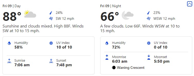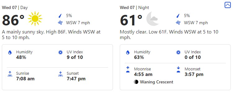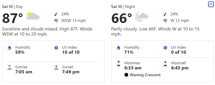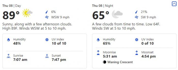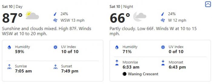 Here, we’ll see an 87-degree high and a 66-degree low.
