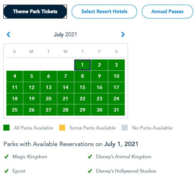 Right now, the 4th of July is still available for all four parks, but if previous months are any indication, this could change fast. Blink of an eye fast, you guys. We saw May fill up before June, so it’s pretty likely that seeing June fill up means July passes will soon be gone, too!