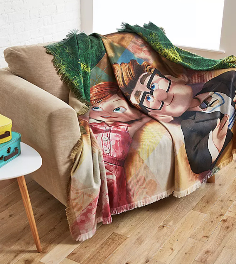 Speaking of date night, what better way to cozy up on the couch than with a throw blanket designed after one of Disney’s cutest couples, Carl and Ellie!