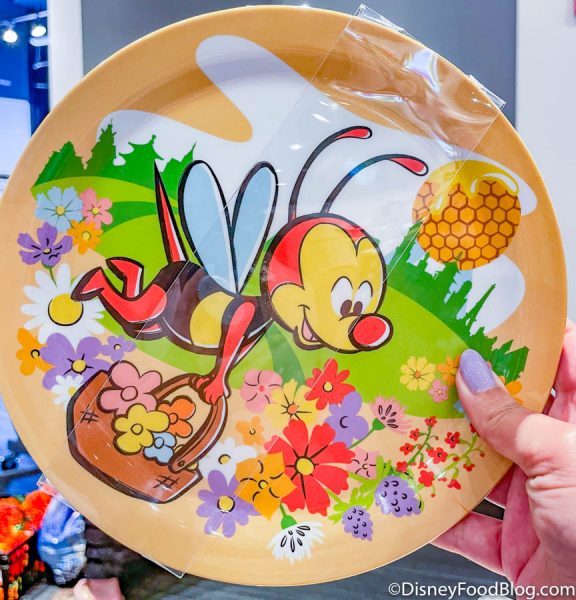 Once you’ve found Spike everywhere, you return the map to Disney Traders or World Traveler for a prize! And previously, that prize was one of four plates. You could choose an Orange Bird plate, a Figment plate, a Minnie plate, or a Spike the Bee Plate.
