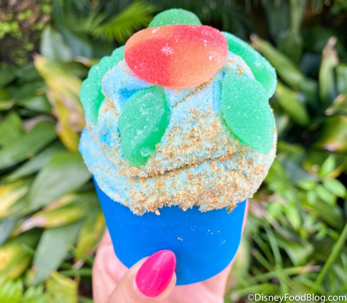 Aside from that tasty lime filling, this was far from the best cupcake we’ve tried in Disney World. The gummies threw off the whole treat, and the other flavors didn’t do much to compensate. But kids may love the fun design! If you want to try it yourself, this cutie patootie is available at Restaurantosaurus for $5.99 through April 29th. We’ll keep you posted with more new snacks here at DFB!
