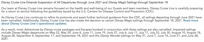 As the global health crisis continues to impact the travel industry, we’ve seen the Disney Cruise Line and Adventures by Disney cancel many of their upcoming departures over the past year.