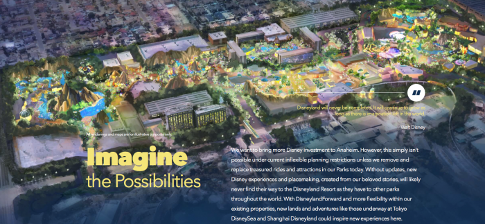 The DisneylandForward website describes “DisneylandForward” as “a multiyear public planning effort with the City of Anaheim to update existing development approvals that will allow Disney to meaningfully invest in Anaheim for years to come and meet the future demands in entertainment.” What does that mean?