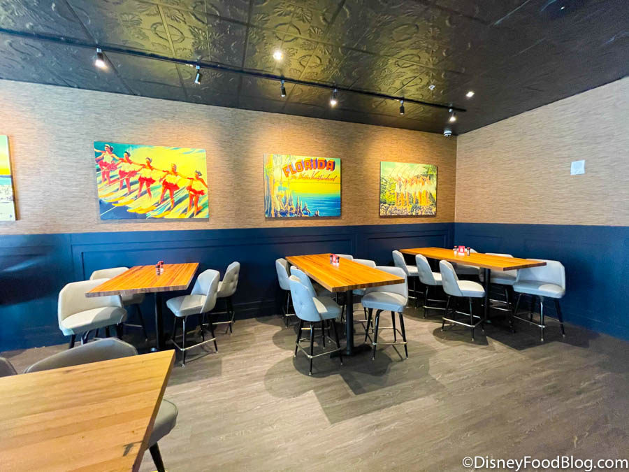 …as well as some tables and booths. You’ll also see the retro art that decorates the rest of Splitsville!