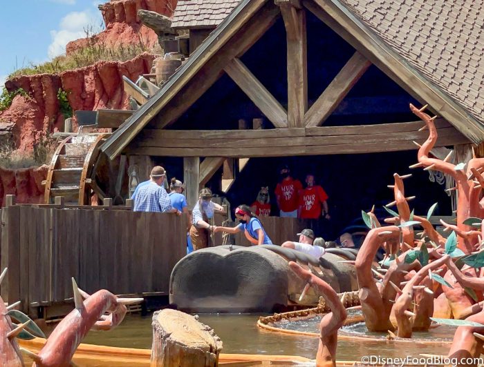 Today, as we were walking past Splash Mountain in Magic Kingdom we noticed that things looked a bit different. Instead of floating around like usual, the boats were actually being evacuated! Ever wonder what an evacuation looks like on Splash Mountain? We’re sharing it all with you here!