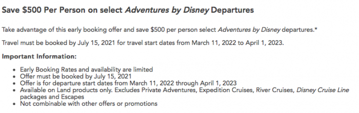 Right now, Adventures by Disney is running an early booking rate offer for select 2022 Land Adventures that could save you $500 PER PERSON!