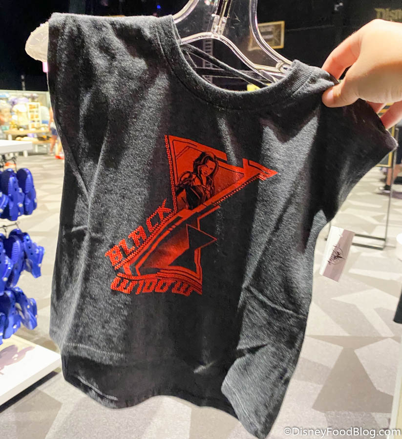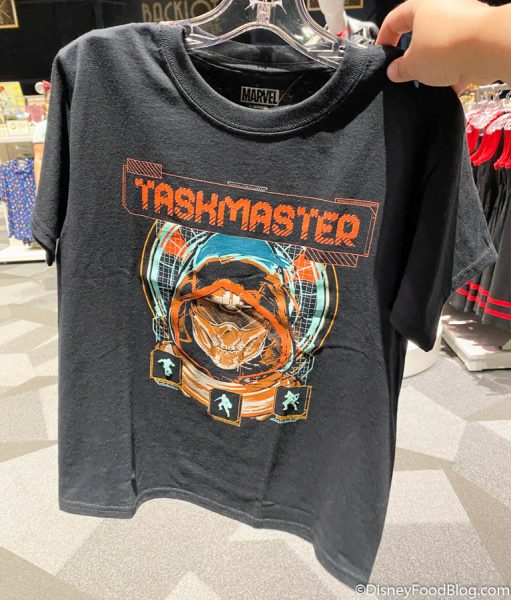 Over at Backlot Premiere Shop, there was a LOT of new Black Widow merchandise. Check out the Taskmaster Black T-shirt for $19.99…