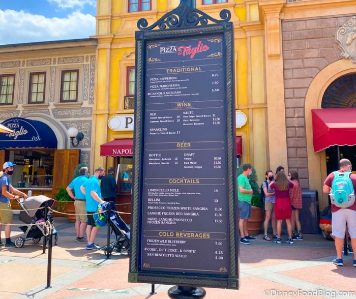 The Italy Pavilion’s pizza window, Pizza al Taglio, is still open as Disney World remains busy.