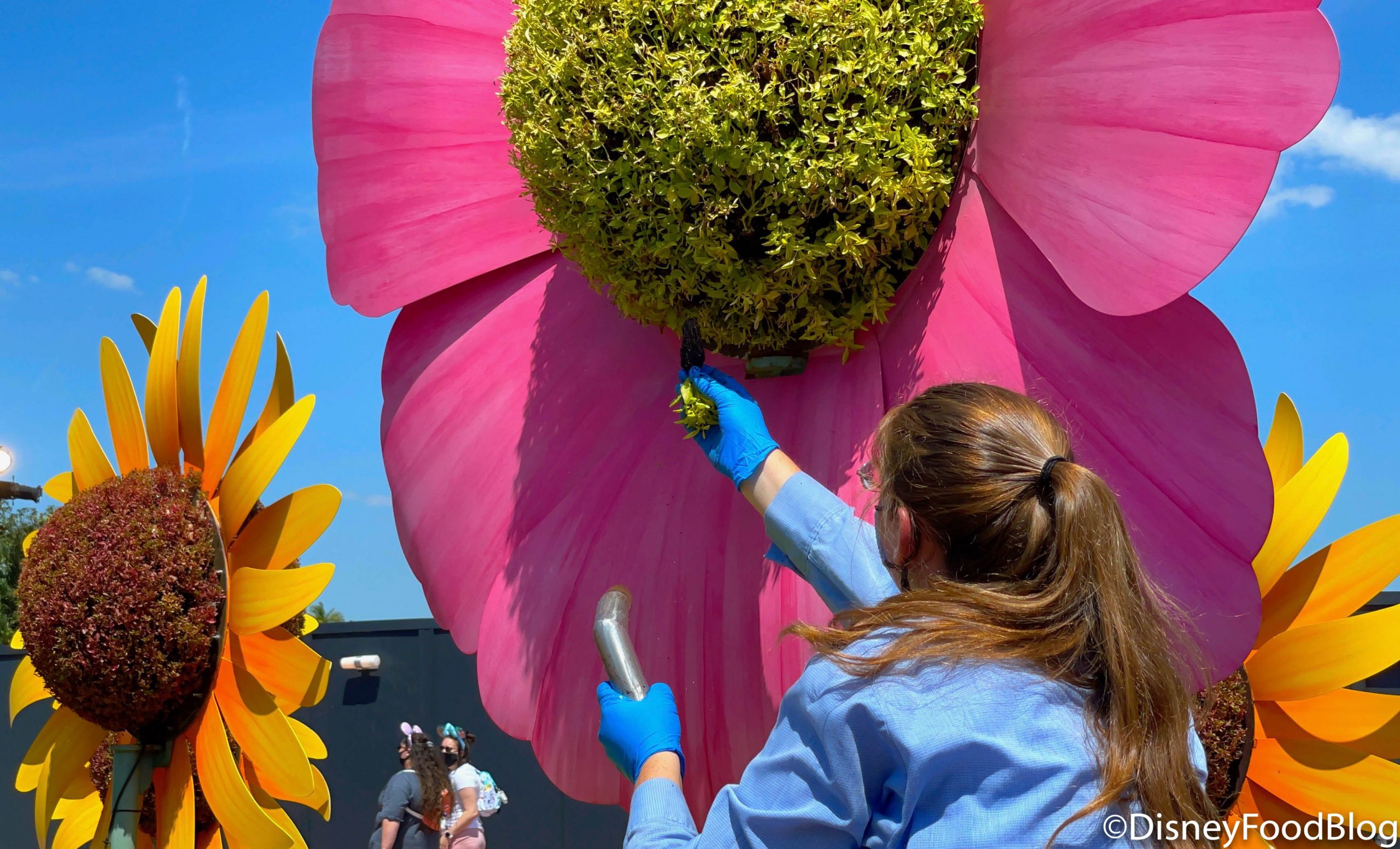 While we were exploring EPCOT today, we spotted that botanical Cast Members were out maintaining the very cool topiaries in place for the Flower and Garden Festival.
