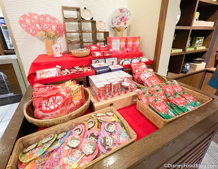 First up, at Mitsukoshi Department Store in the Japan Pavilion, there’s a strawberry snack display up. How cute!