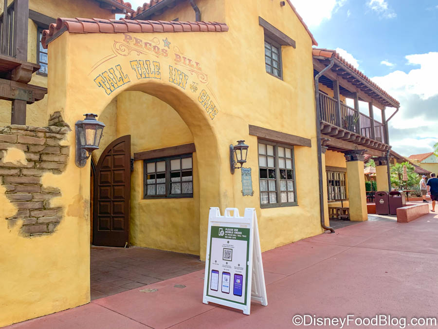 For our first and (spoiler alert) only stop in Magic Kingdom, we’re visiting Pecos Bill Tall Tale Inn & Cafe. Pecos Bill serves up a Mexican-style menu in a quick-service setting, and its unique options have become a favorite of many Disney guests.