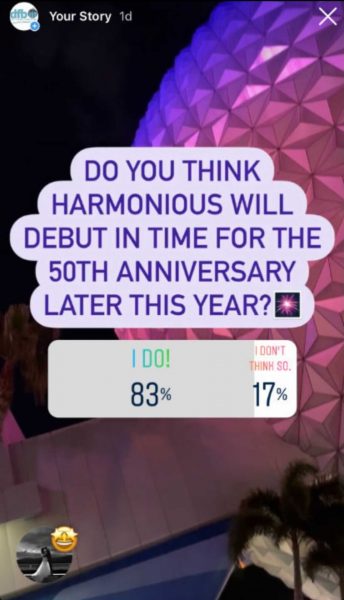 So will that actually happen? We don’t know! So, we asked YOU, our readers, what you thought. And it seems that many of you are thinking positively about a new nighttime show happening at Disney World this year. Over 80% of you believe that Harmonious will debut in time for the 50th anniversary.