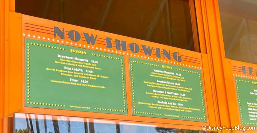The pool bar has also reopened at All-Star Movies, and we took a peek at the menu! They have several drink options available, including frozen beverages, sangria, and wine.