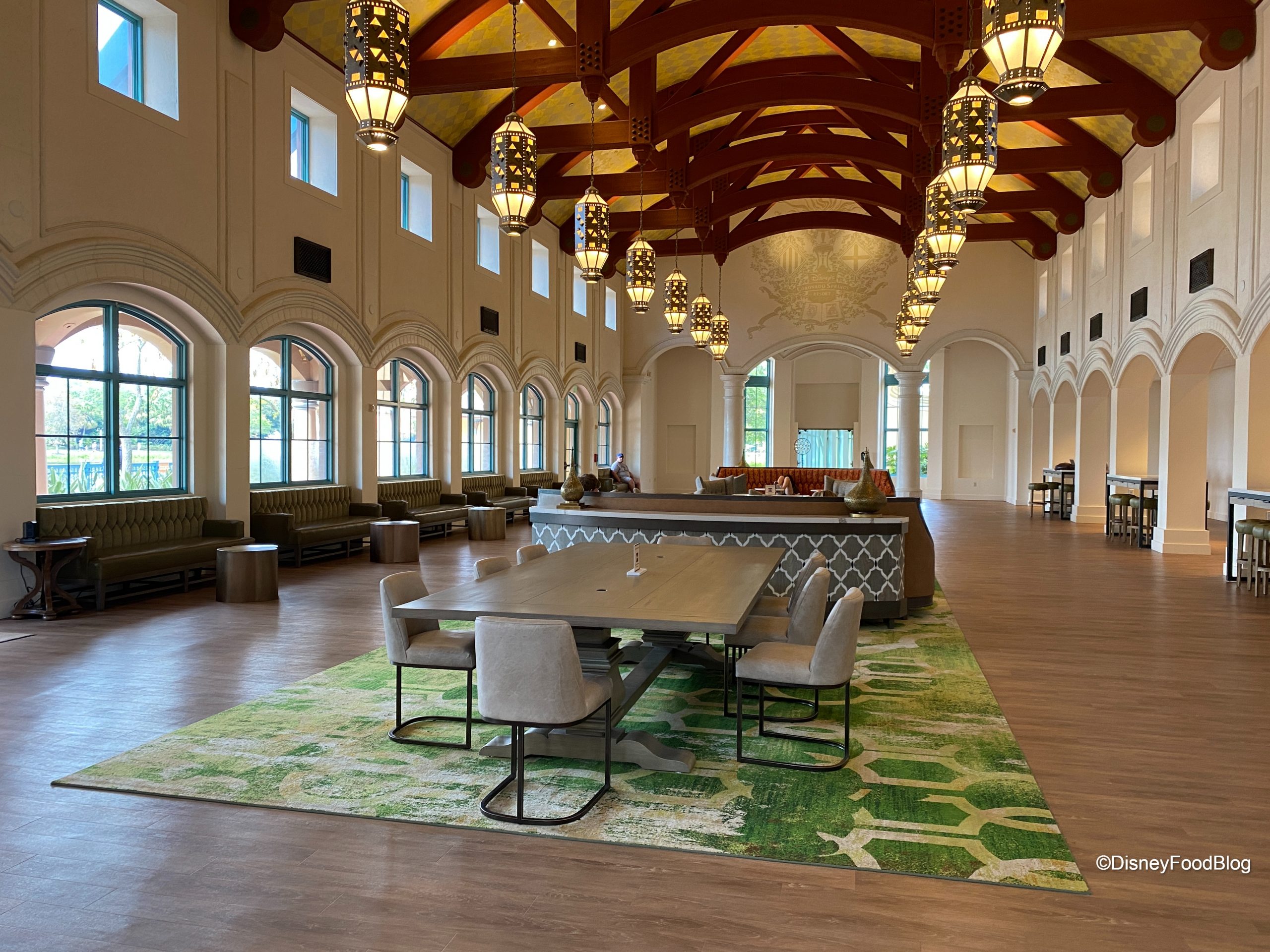 Also at Coronado Springs, we noticed that several tables, chairs, and desks were set up inside the resort’s original lobby! Several large conference-style tables have been added, as well as smaller desks along the sides.