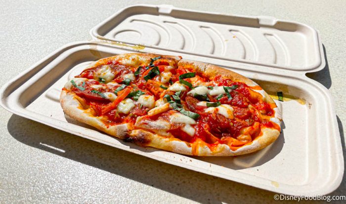 Pizza can be hit or miss in Disney World. Sometimes you’re eating pillowy or cardboardy not-so-good slices and sometimes you’re eating yummy and authentic slices (We’re looking at you Via Napoli!). Well, it seems we’ve got another option when it comes to the latter — and we gave it a try!