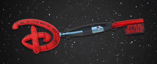 Star Wars Day is coming up next month! This fan holiday takes place on May 4th; get it? May the Fourth be with you! In celebration, Disney is releasing SIX new collectible keys online! First up, take a gander at the Star Wars Day Collectible Key that looks just like a red lightsaber.