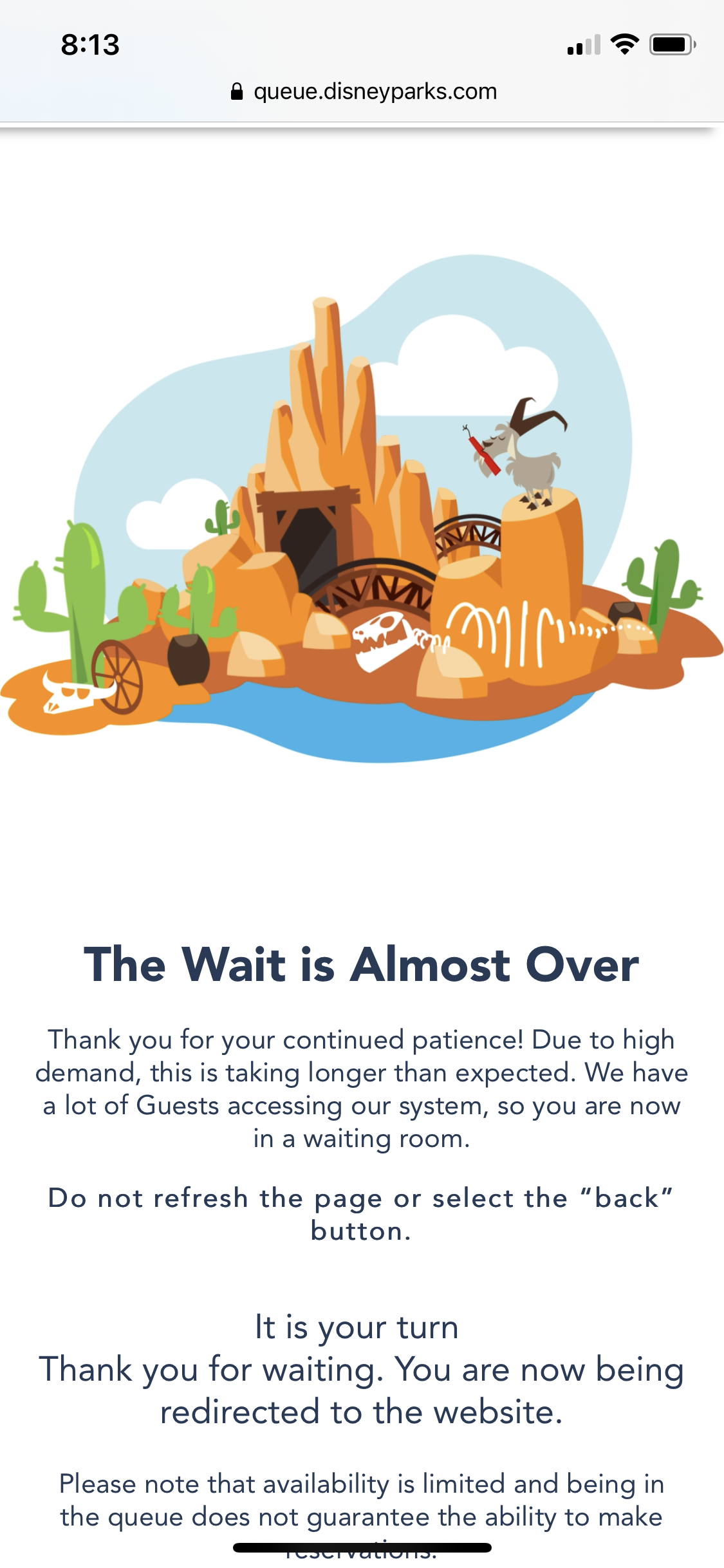…only to be placed in another queue. Meanwhile, our laptop had jumped down to 23 minutes…but who knows if that’s actually true. Guys, we’re getting A Touch of Disney flashbacks ALL over again.