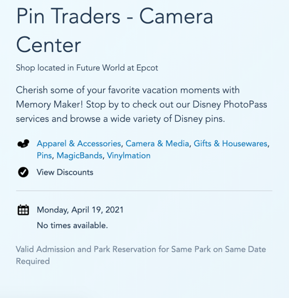 According to Disney World’s website, Pin Traders (also known as Camera Center…you know the one under Spaceship Earth) is showing hours as UNAVAILABLE beginning Monday, April 19th!