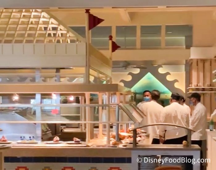 While we were visiting Beach Club recently, we spotted several Cast Members in the kitchen area of Cape May Cafe.