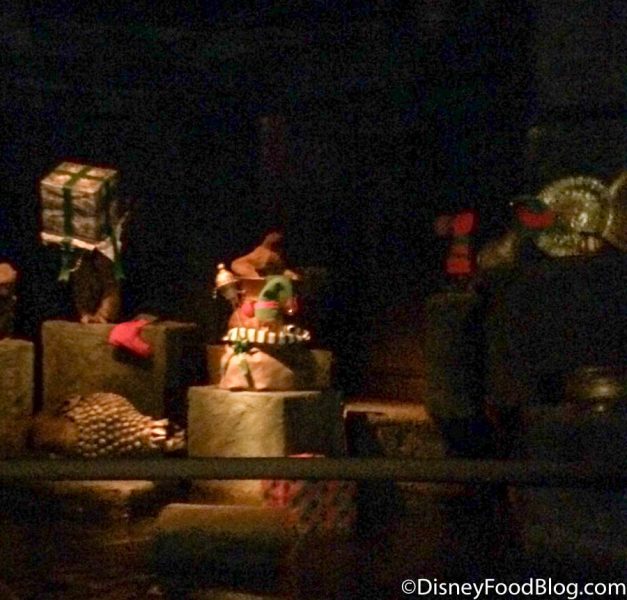 The largest dining room is the Ballroom, which is also packed to the brim with theming. For one, the falling snow in the windows perfectly matches the sequence in the movie. And if you look up, you’ll spot a mural on the massive ceiling.