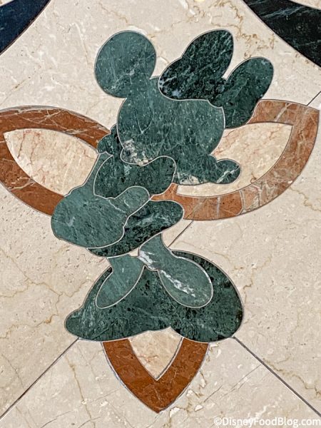 But don’t forget to take a peek down every now and then too. Each of the Fab Five are featured on the floor of the Grand Floridian, including Miss Minnie Mouse herself!