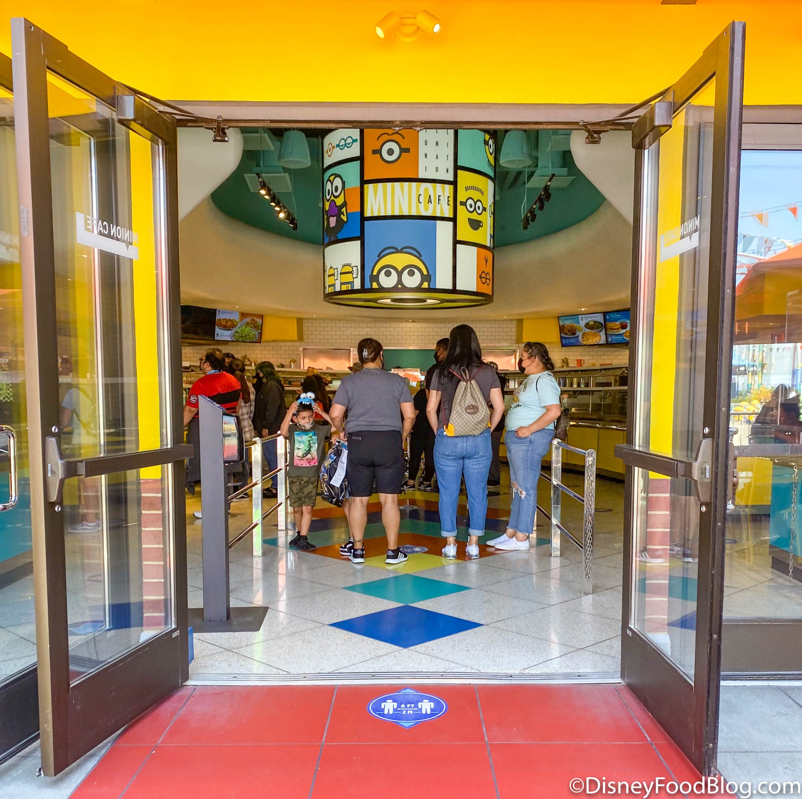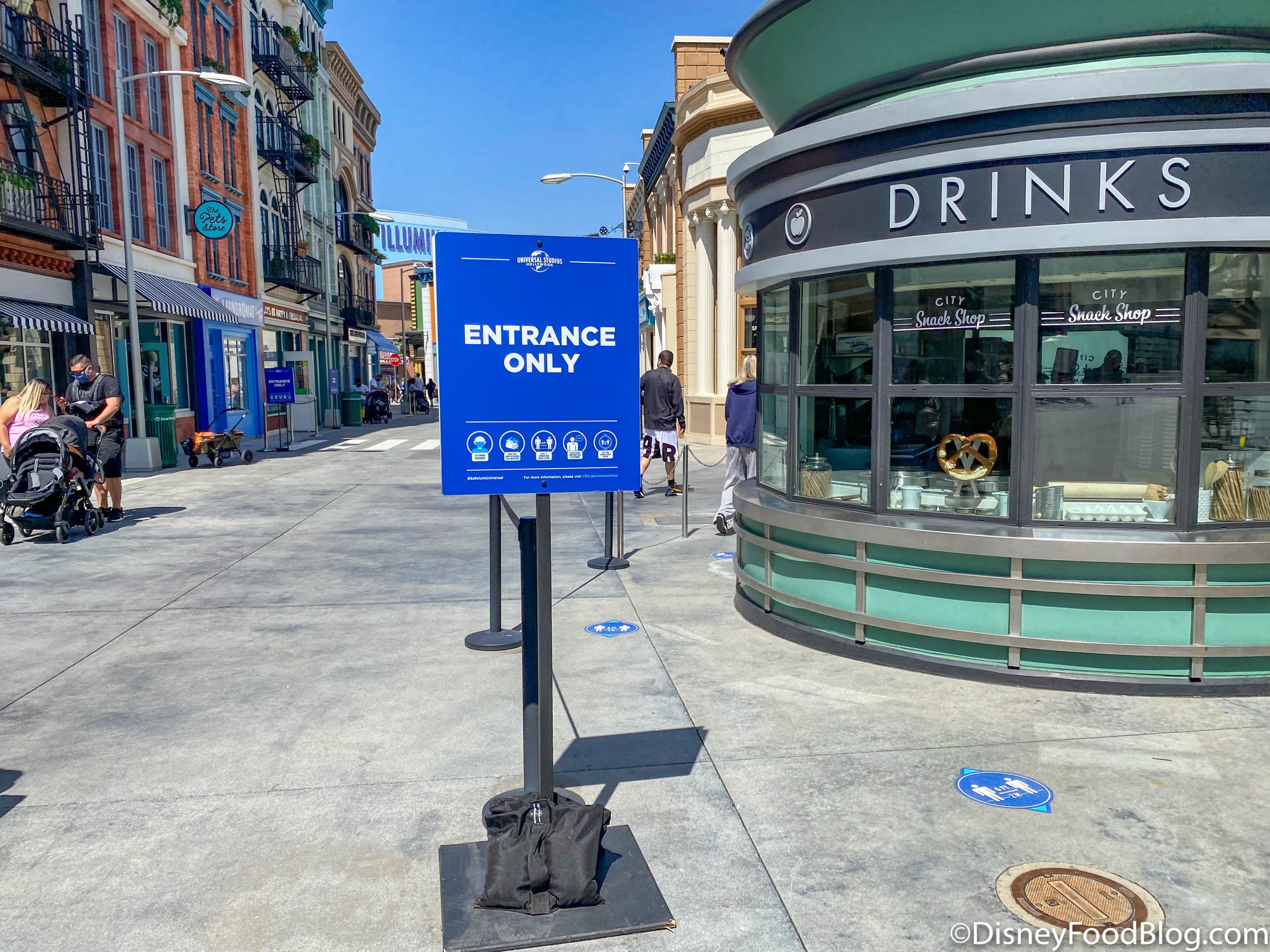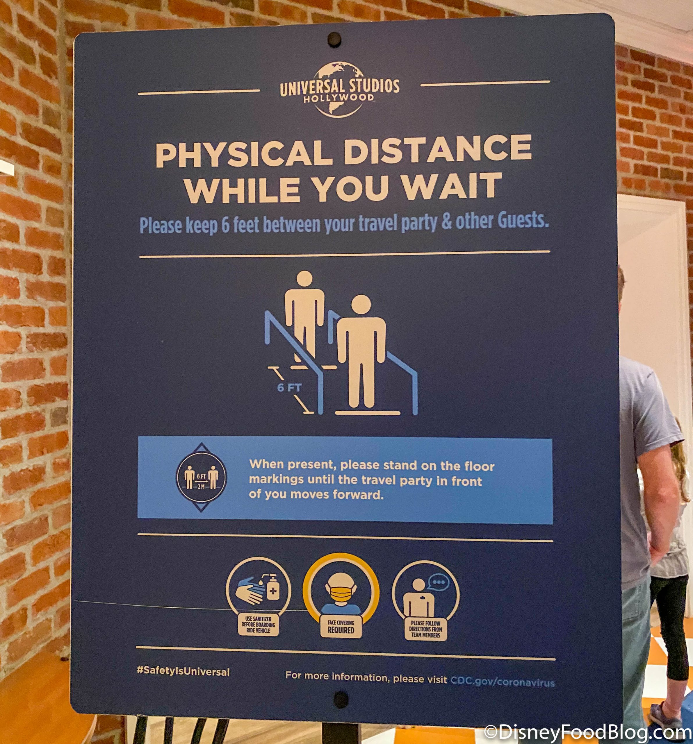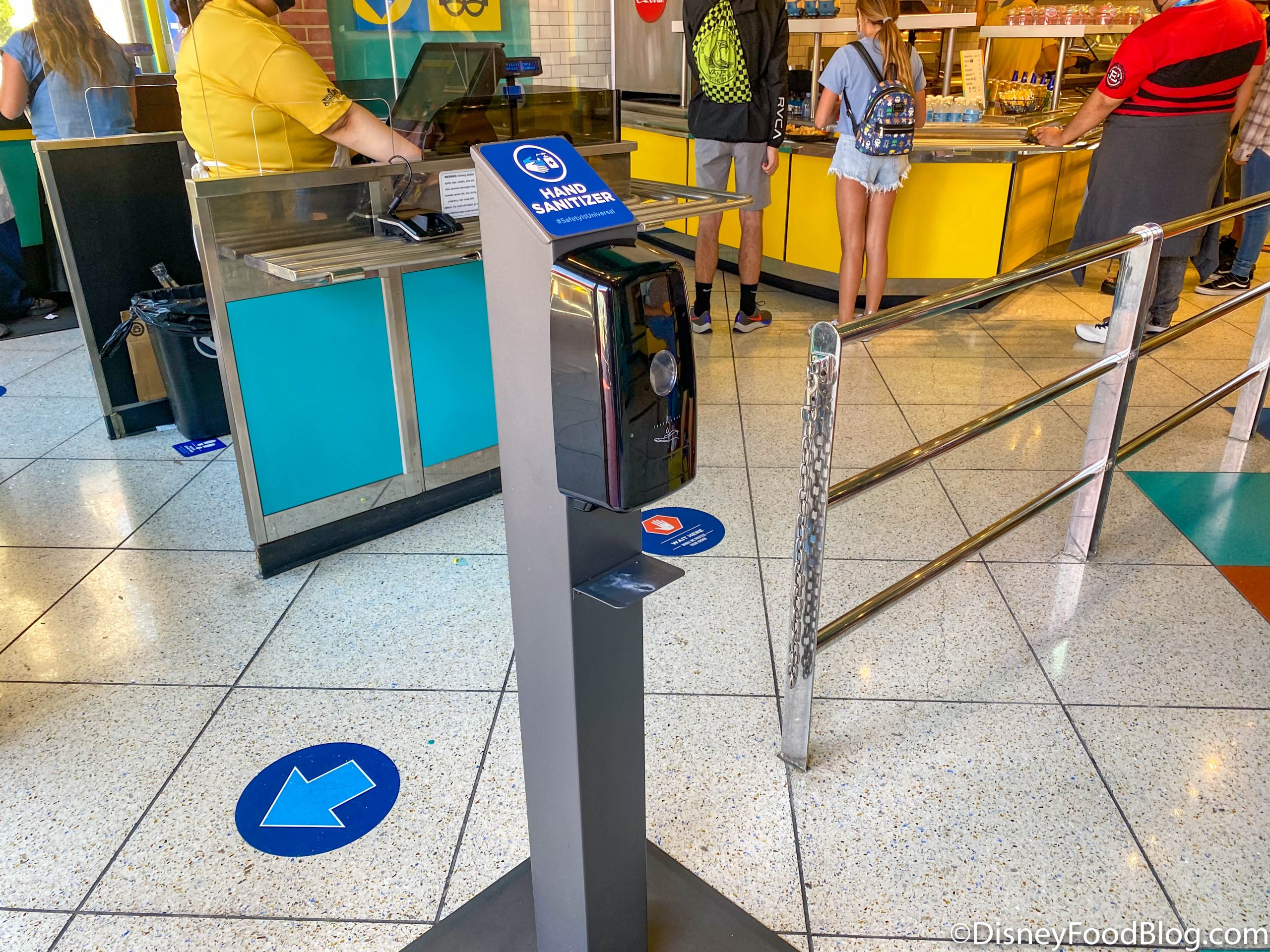 …and various signs on the floor, showing guests where they should stand and reminding them to keep an appropriate distance from others. This is similar to what we’ve seen in Disney World and elsewhere.