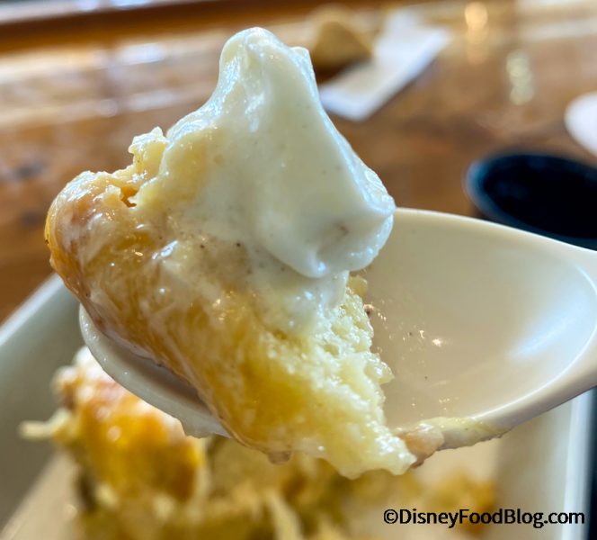 All in all, this is a wonderful tropical-inspired dessert. ‘Ohana’s bread pudding with the drippy caramel sauce is a CLASSIC that we adore, but we like that Disney decided to do something unique with this one. And it worked!