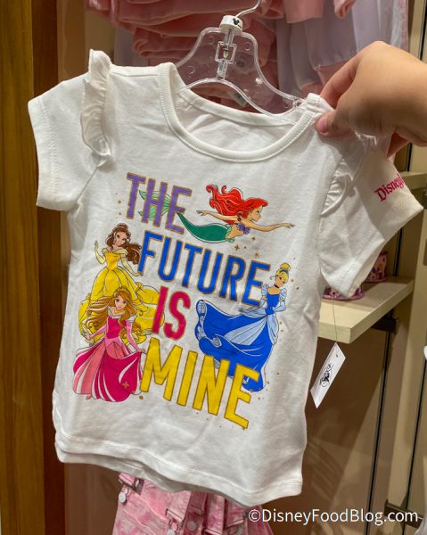 And, this “Future is Mine” T-Shirt features some classic princesses — Belle, Ariel, Cinderella, and Aurora — for $17.99.