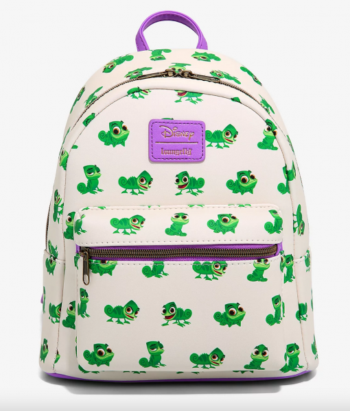 If you’re a princess fan who doesn’t necessarily need tiaras and glitter on everything, you might like this new Tangled Loungefly bag that features Rapunzel‘s buddy, Pascal! The entertaining chameleon is showing us LOTS of personality with some poses ranging from silly to dramatic!