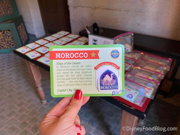 Did you know you can get FREE collectible cards ALL over World Showcase? If you’ll look at your EPCOT map (either the one you pick up there or on the My Disney Experience app), you’ll see a Kidcot Fun Stop at each pavilion. There, you can pick up a collectible card — FOR FREE — with facts about the cultures and traditions of each country.
