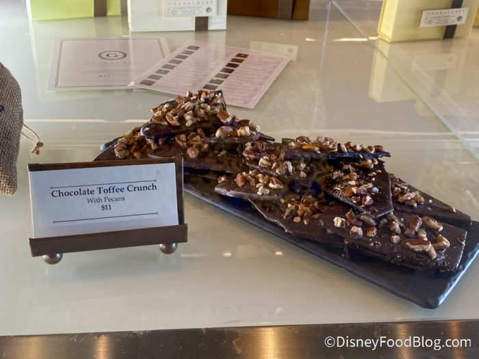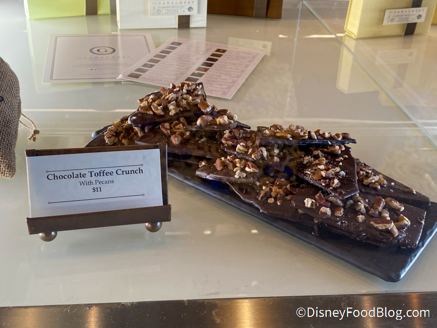 Each time we pass The Ganachery, the lovely smell of chocolate draws us inside! The Chocolate Toffee Crunch with pecans was still available in the bakery case for $11…