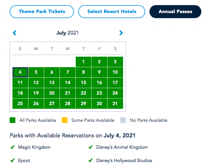 Park Pass reservations for Magic Kingdom on July 4th are completely booked for both Theme Park Ticket Guests…